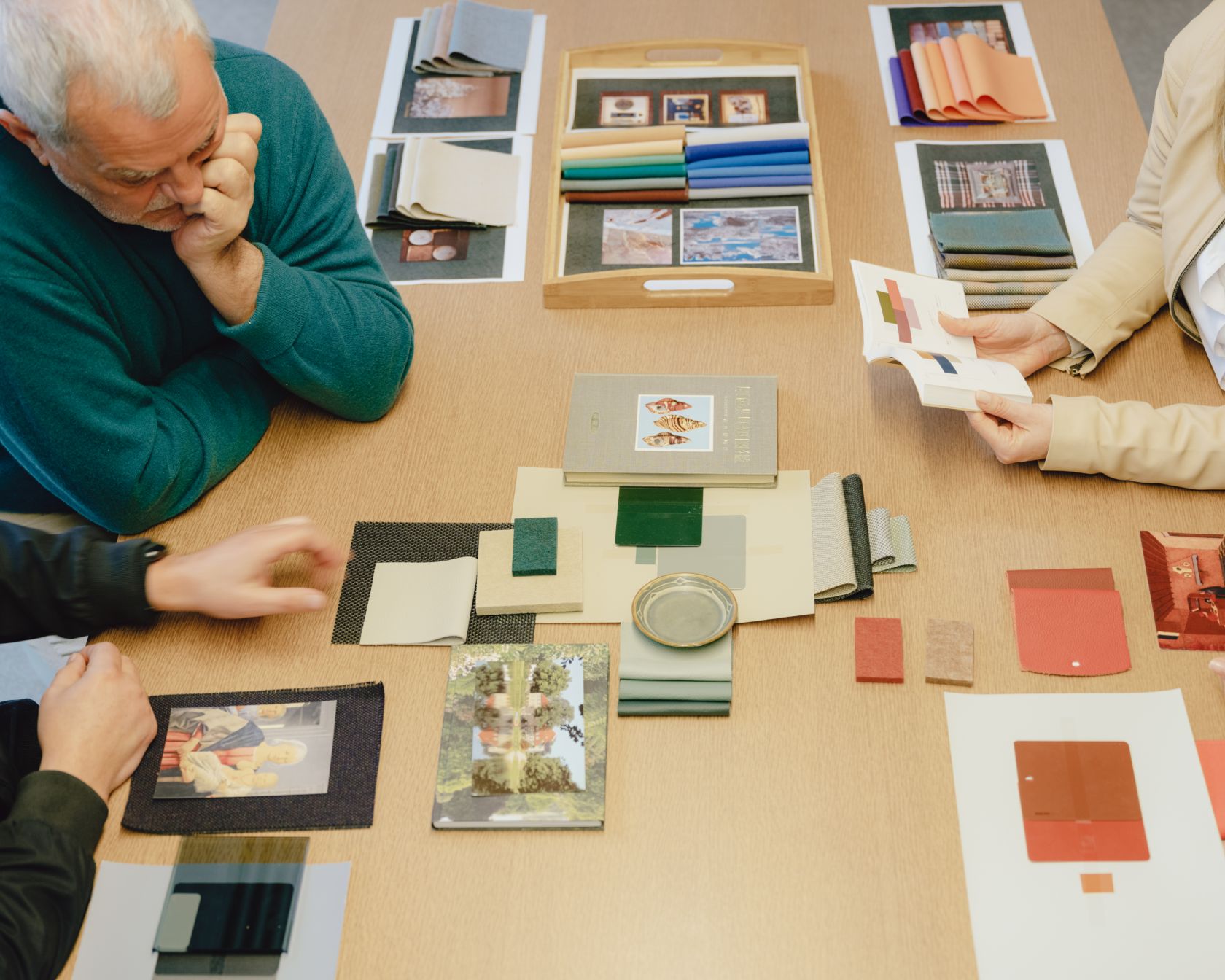 Upon arriving at HQ, the colour master presented recent insights on places of inspiration, landscapes, material forms and processes with the broader Schiavello team. Communicating both through physical and visual references, Giulio spoke to the prominence of warmth, comfort and familiarity from textiles such as wood, with an emphasis on peaceful elements that help create a seamless shift from home to office. Natural pigments, ceramic finishes and light and dark neutral tones also featured heavily.