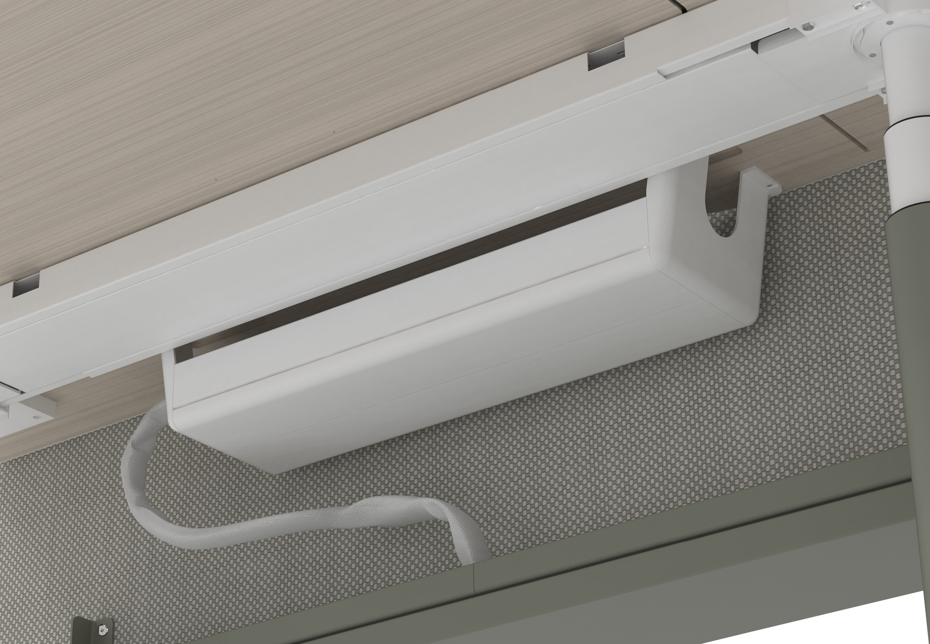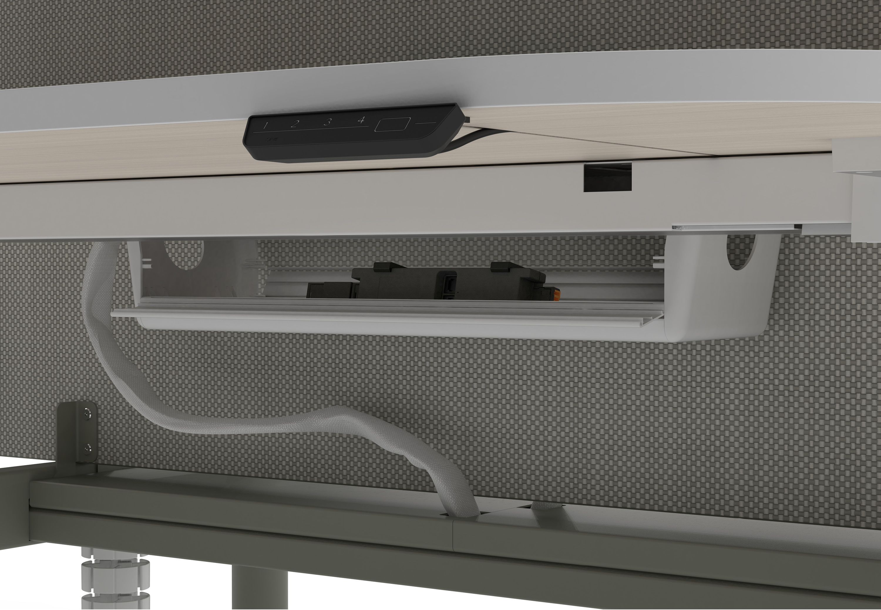 The Power Control Module (PCM) works behind the scenes to detect desk activity and cuts unnecessary power. In doing so it maintains a responsive, sustainable, and cost-efficient workspace that adapts effortlessly as people move throughout their day.